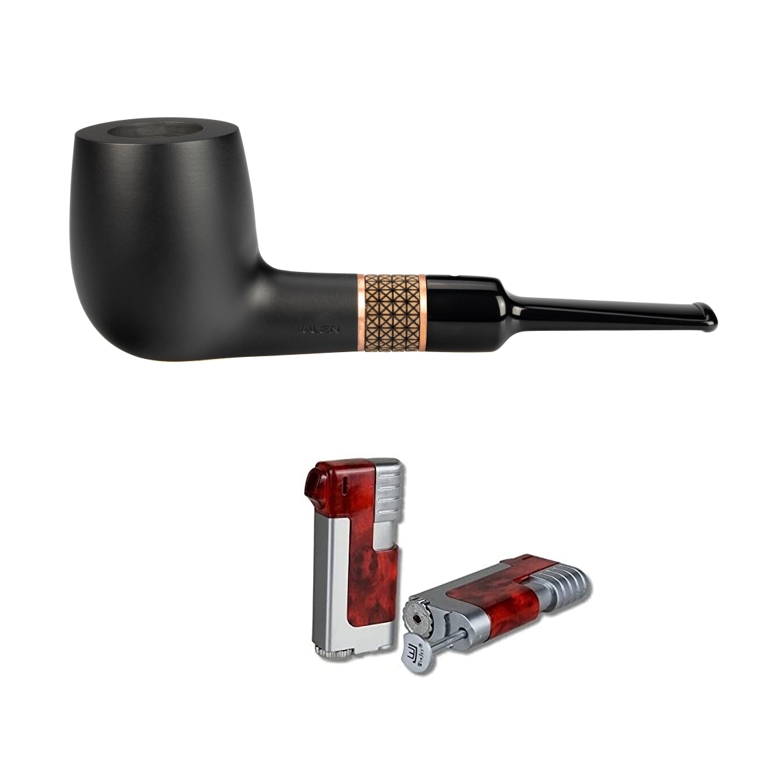 Im Set enthalten ist hochwertiges Piezo - Pfeifenfeuerzeug inkl.