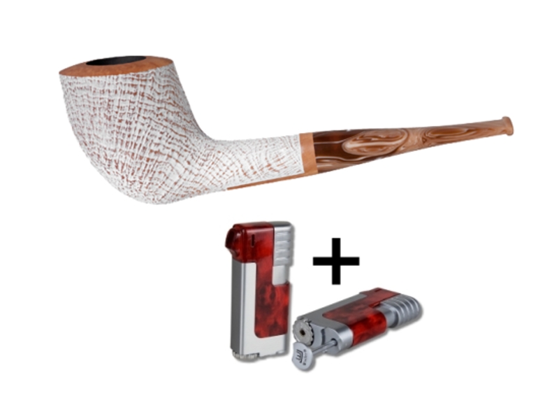 Die weiß gebeizten, sandgestrahlten Modelle fallen auf und werden durch ein harmonisch abgestimmtes, braun-weiß marmoriertes Mundstück wirkungsvoll abgerundet.